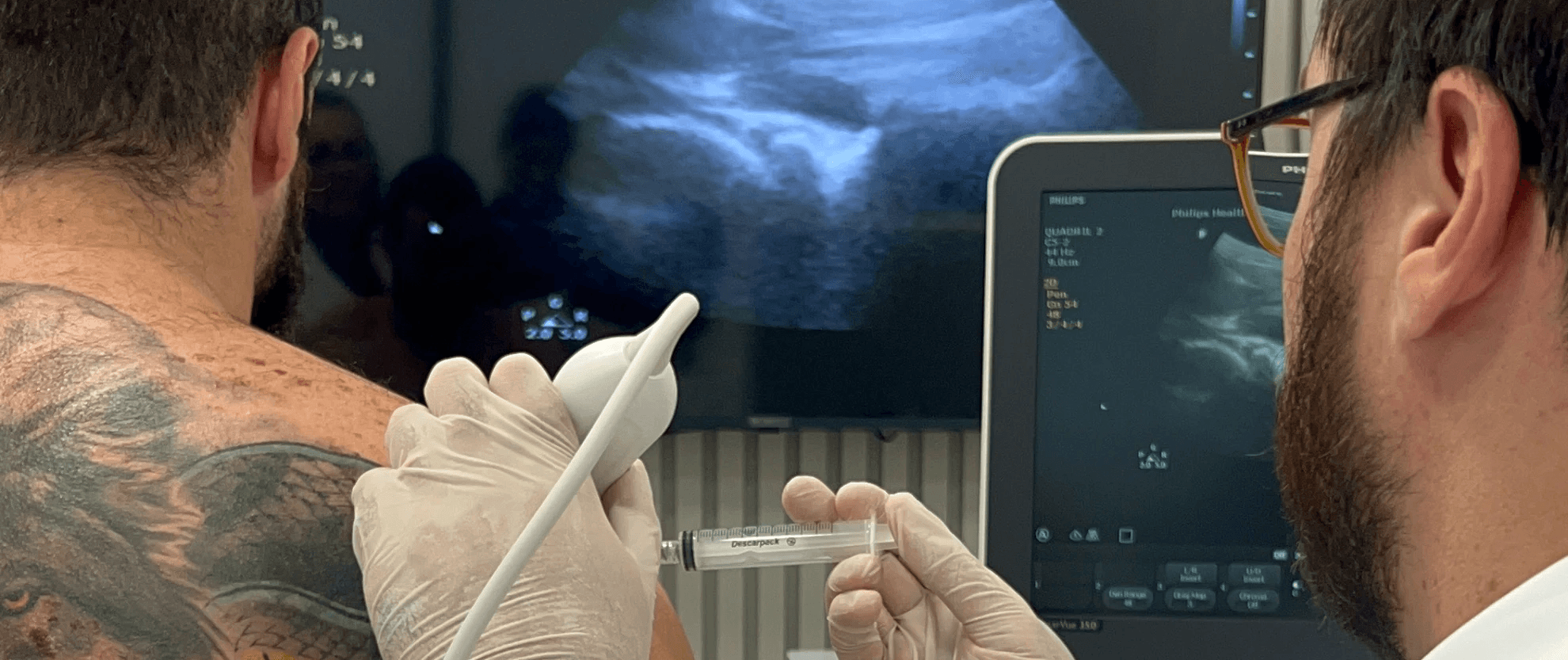 Infiltrações e bloqueios guiados por ultrassom. Técnicas de infiltração com células-tronco e outras técnicas modernas de reabilitação e performance.